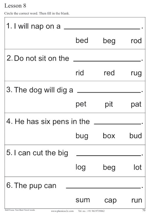 progresses in skill difficulty and provides extensive practice and consistent review and reinforcement for Short Vowels words.